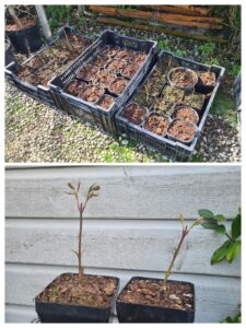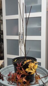 Iwan Roos gaf vorig jaar al aan dat hij zijn Arakawa had laten enten bij twee broers in Boskoop. Nu was het zover. Hij had 3 bakken vol staan met kleine geente Arakawa’s. Ik heb er 2 voor mijzelf uitgezocht, 1 voor Paula en 1 voor een andere clubgenoot.