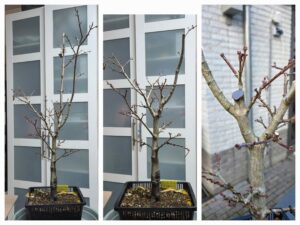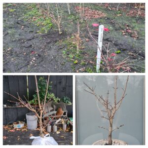 Met hulp van Paula de Aureum gesnoeid. We hebben een flinke tak in de top verwijderd en de andere top wat ingekort. Dit is een mooie boompje met veel takken op de goede plekken.