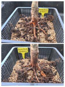 De wortelvoet valt helemaal niet tegen. De Aureum is een schitterende Acer en ik hoop dat ik er een mooie bonsai van kan maken met een goede Nebari.