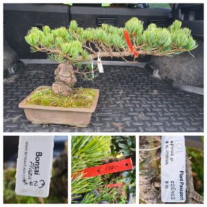 Voor 0800h zat ik al in de auto om naar de uitverkoop van Bonsai Plaza te gaan. Ik heb daar 5 uur rondgelopen, gepraat, gevraagd en geleerd. Deze Witte Den gekocht omdat hij een mooie cascade heeft en een dikke wortelvoet (geënt op de zwarte den).