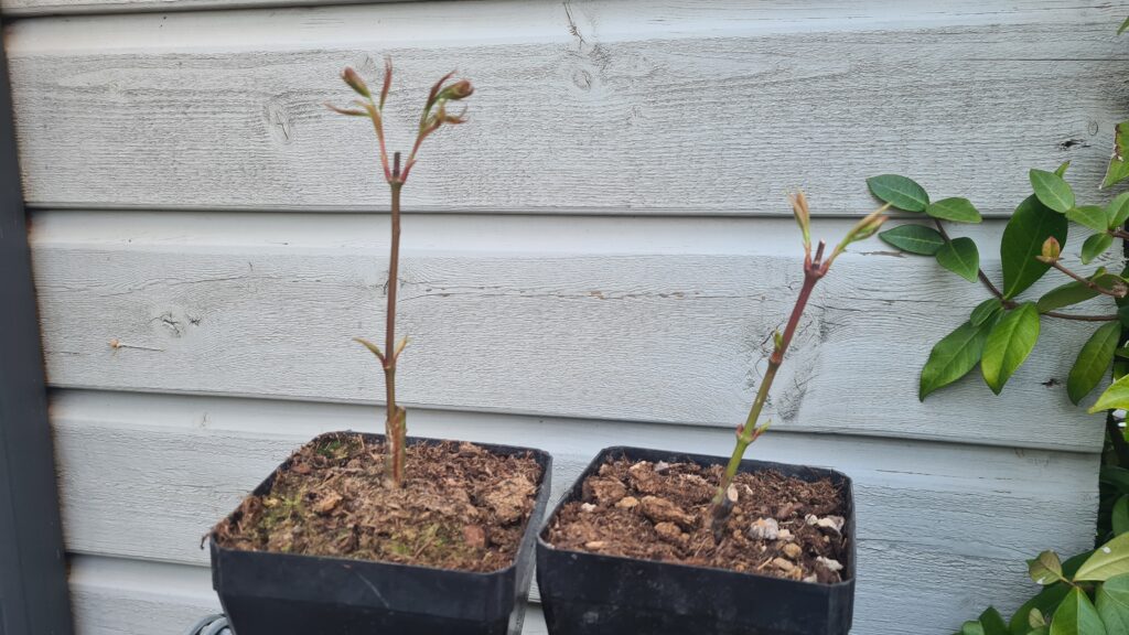 Iwan Roos gaf vorig jaar al aan dat hij zijn Arakawa had laten enten bij twee broers in Boskoop. Nu was het zover. Hij had 3 bakken vol staan met kleine geente Arakawa’s. Ik heb er 2 voor mijzelf uitgezocht, 1 voor Paula en 1 voor een andere clubgenoot.